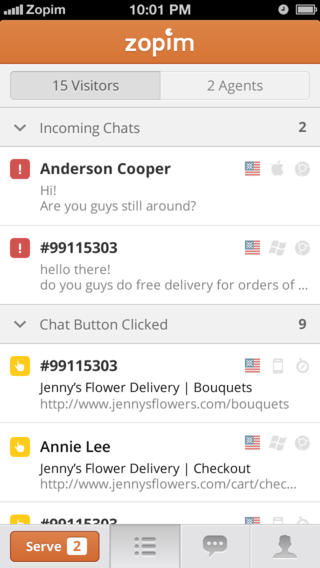 website để hỗ trợ khách hàng, thì Zopim cũng hỗ trợ các dòng Smartphone để hỗ trợ người dùng trong việc chăm sóc khách hàng.